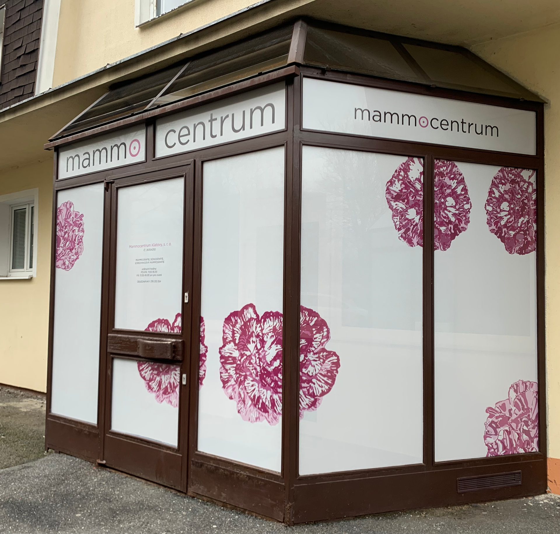 Pro zdravotnické zařízení Mammocentrum Klatovy jsem navrhla vizuální identitu. Součástí projektu bylo vytvoření nového designu včetně samolepící folie na vstupních dveřích a oknech. Pro hlavní motiv jsem zvolila klatovské karafiáty, které jsou symbolem města Klatovy, ženskosti a přírody. Uspořádání karafiátů v designu symbolizuje také prsa, což odkazuje na specializaci Mammocentra. Barvy použité v interiéru a propagačních materiálech jsou dlouhodobě laděny do odstínů růžové, což bylo v souladu s celkovým designem vizuální identity.